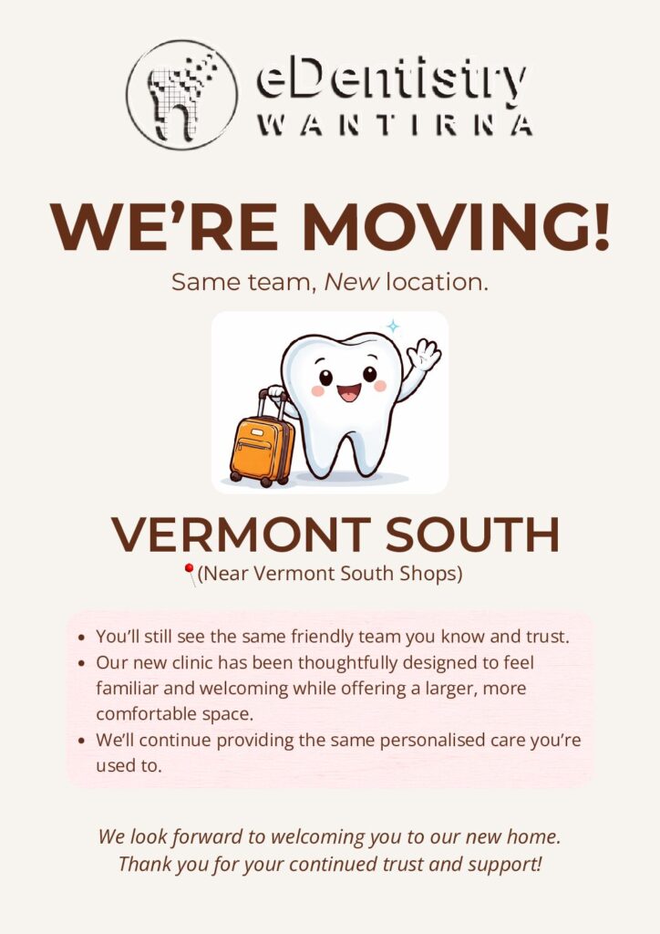 Announcing Our Upcoming Relocation eDentistry Wantirna has some exciting news! We will be moving to a new location as our 10 year lease is up! This transition is part our ongoing efforts to enhance our services and better serve our community. During this period, we will implement measures to ensure minimal disruption to our operations. […]
